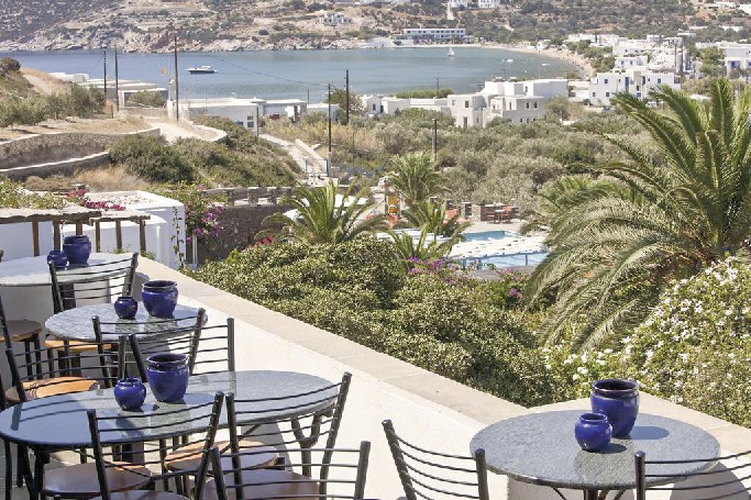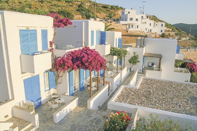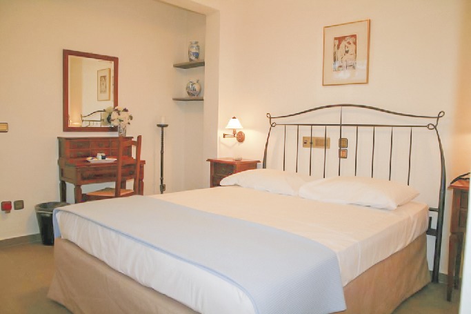 Zimmer : Doppelzimmer (DGF): Hell, im Kykladenstil eingerichtet, Bad mit Dusche, WC, Föhn, WLAN (Balkon/Terrasse), TV, Minibar, Klimaanlage. Balkon oder Terrasse mit Gartenblick. Belegung: Max. 2 Erw. Suite (FGF): Elegant eingerichtet, 2 Zimmer mit Verbindungstür, ansonsten Ausstattung wie Doppelzimmer. 2 Veranden mit Gartenblick. Belegung: Max. 5 Erw.